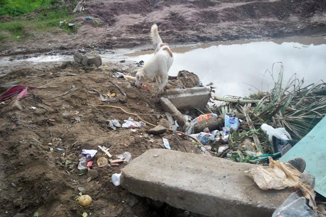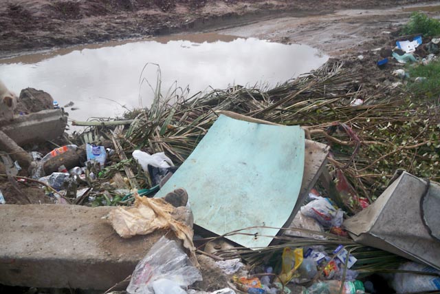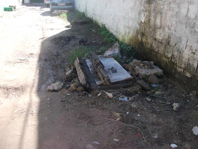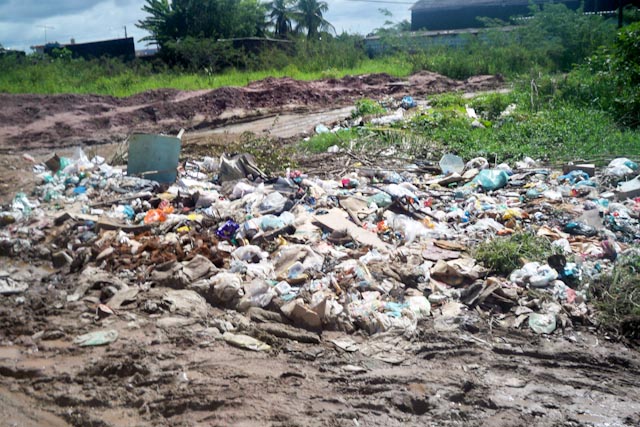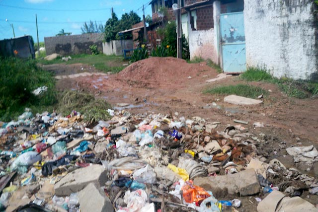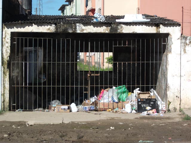 lixeira do conj habitacional (G) onde todos os moradores desta e de outras ruas vizinhas jogam o lixo, pois não há coletores de lixo.