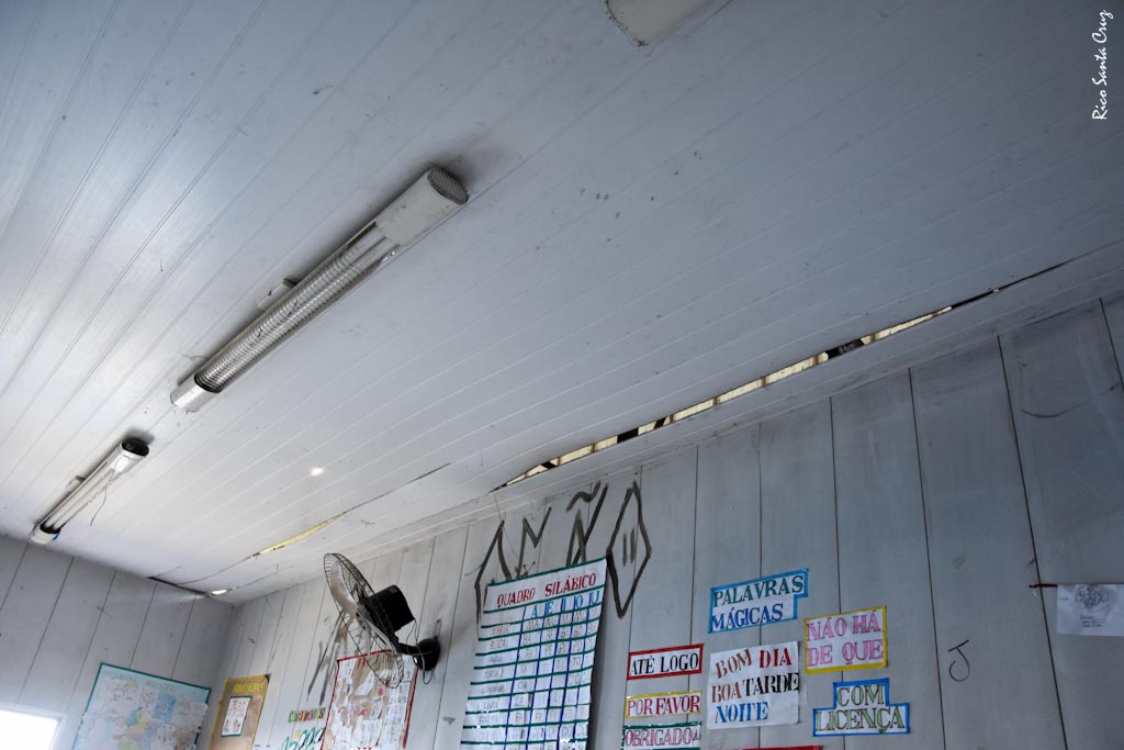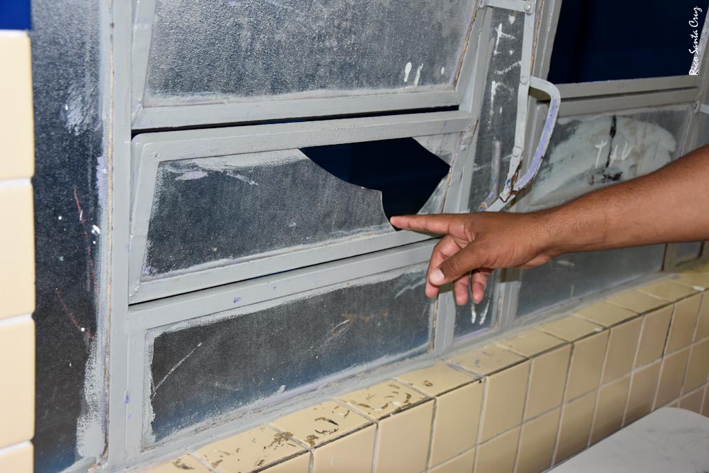sala de aula cadeiras estragadas e vidraças quebradas que por sinal ficam