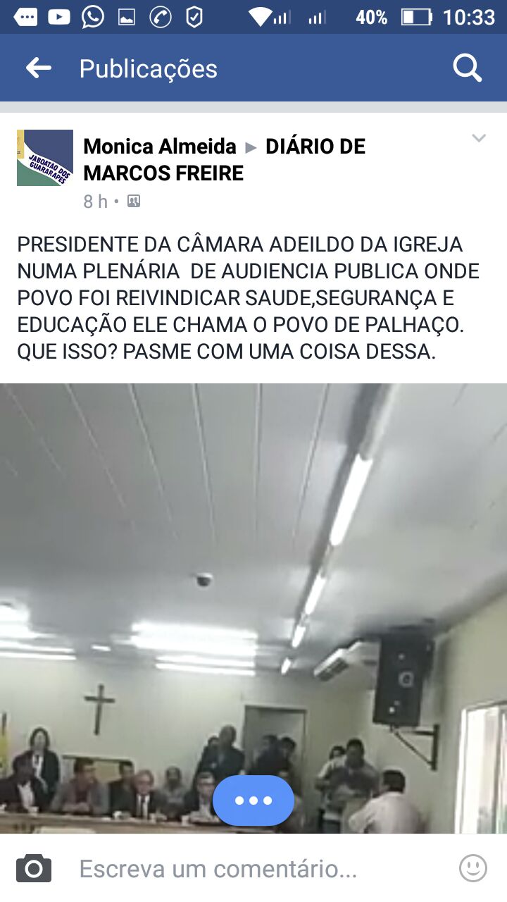 a última que vi em uma rede social foi o presidente da casa legislativa se comportando de uma forma inaceitáver, vergonhosa e vou além (sem respeito ao povo)