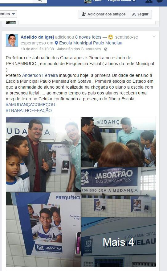" Prefeitura de Jaboatão dos Guararapes é Pioneira no estado de PERNAMBUCO , em ponto de Frequência Facial ( alunos da rede Municipal ).